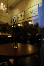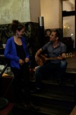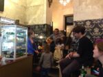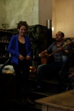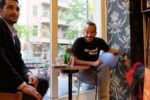 Die Bilder vom Künstler Grischa Grebe passten einmalig zur wilden Steinwand der BrezelBar. Der Abend war lau, die Gäste trudelten nach und nach ein. Es gab frische Brezeln , Sekt und gute Musik. Eine Klangmischung aus arabischer und euopäischer Musik vereint mit Stimme und Zaz(Syrisches Saiteninstrument) in der BrezelBar. Kleine Kinder turnten zwischen den Beinen der Gäste herum. Der Besitzer der Bar, Oren Dror war ganz angetan von der wunderbaren Musik und keiner wollte den Abend enden lassen. Eine gelassene Stimmung. Wir freuen uns über viele Besucher!